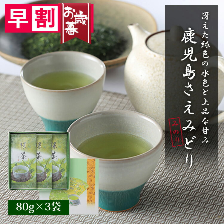 お歳暮 早割 お茶 ギフト 贈り物 緑茶 煎茶 日本茶 さえみどり 鹿児島産 80g 3袋 セット 深4860円(税込/送料込)カード利用可・海外配送不可・翌日配送不可ありがとうの気持ちを伝える煎茶ギフト 上級煎茶 健康 御礼 御祝い かごしま茶 品種 感【みのり工房匠】