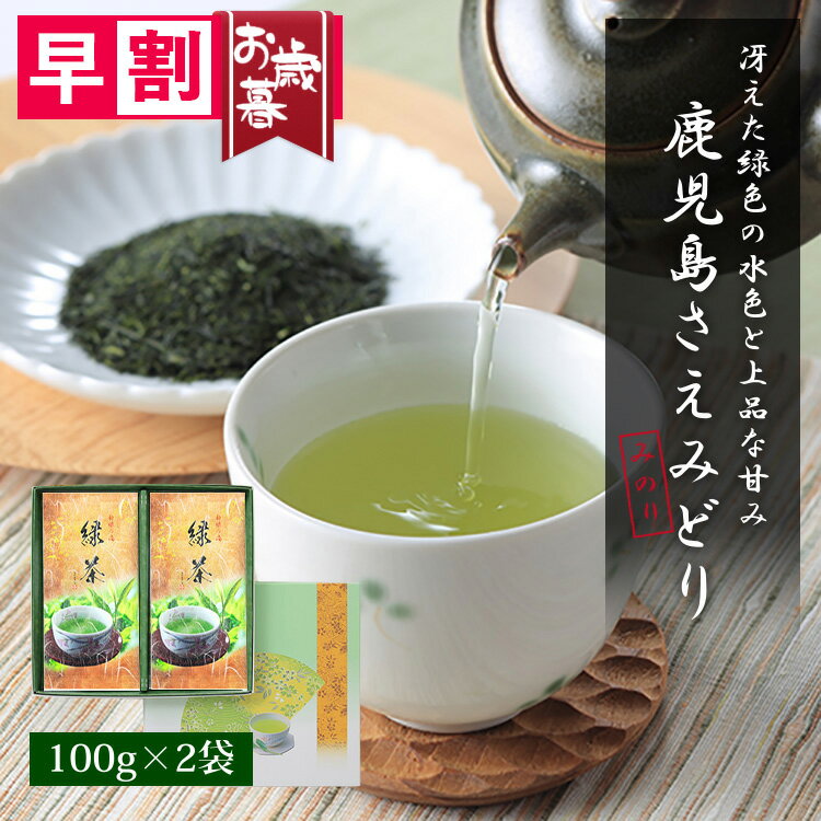 お歳暮 早割 お茶 ギフト 内祝い 緑茶 煎茶 日本茶 さえみどり 鹿児島茶 100g 2袋 セット プ4050円(税込/送料込)カード利用可・海外配送不可・翌日配送不可感謝の気持ちを伝える上級煎茶セット 国産 品種 銘茶 かごしま茶 贈答 御礼 御祝い 引出【みのり工房匠】