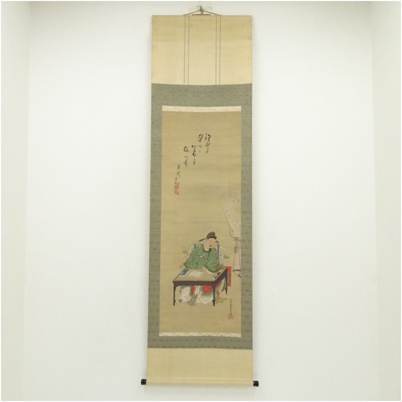 【中古】【セール25%オフ】【書画】江戸後期 狩野洞白愛信筆 唐人物図 井上士朗賛 肉筆絹本掛軸 掛け軸 床の間 書 おしゃれ 絵画 表具 芸術 茶道 年中掛け インテリア 茶掛 45000円(税込/送料込)カード利用可・海外配送不可・翌日配送不可【セール25%オフ】【茶道具・掛軸】送料無料 【茶道具・掛軸のショップつなぐ】