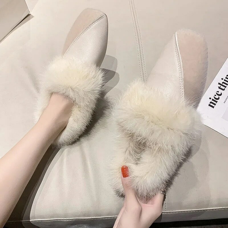 スノーブーツ【真兎毛】正方形平底の英倫風毛足靴を履く女性の新型保温綿靴